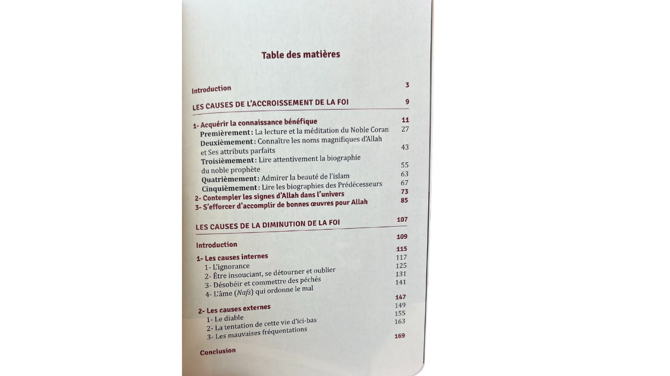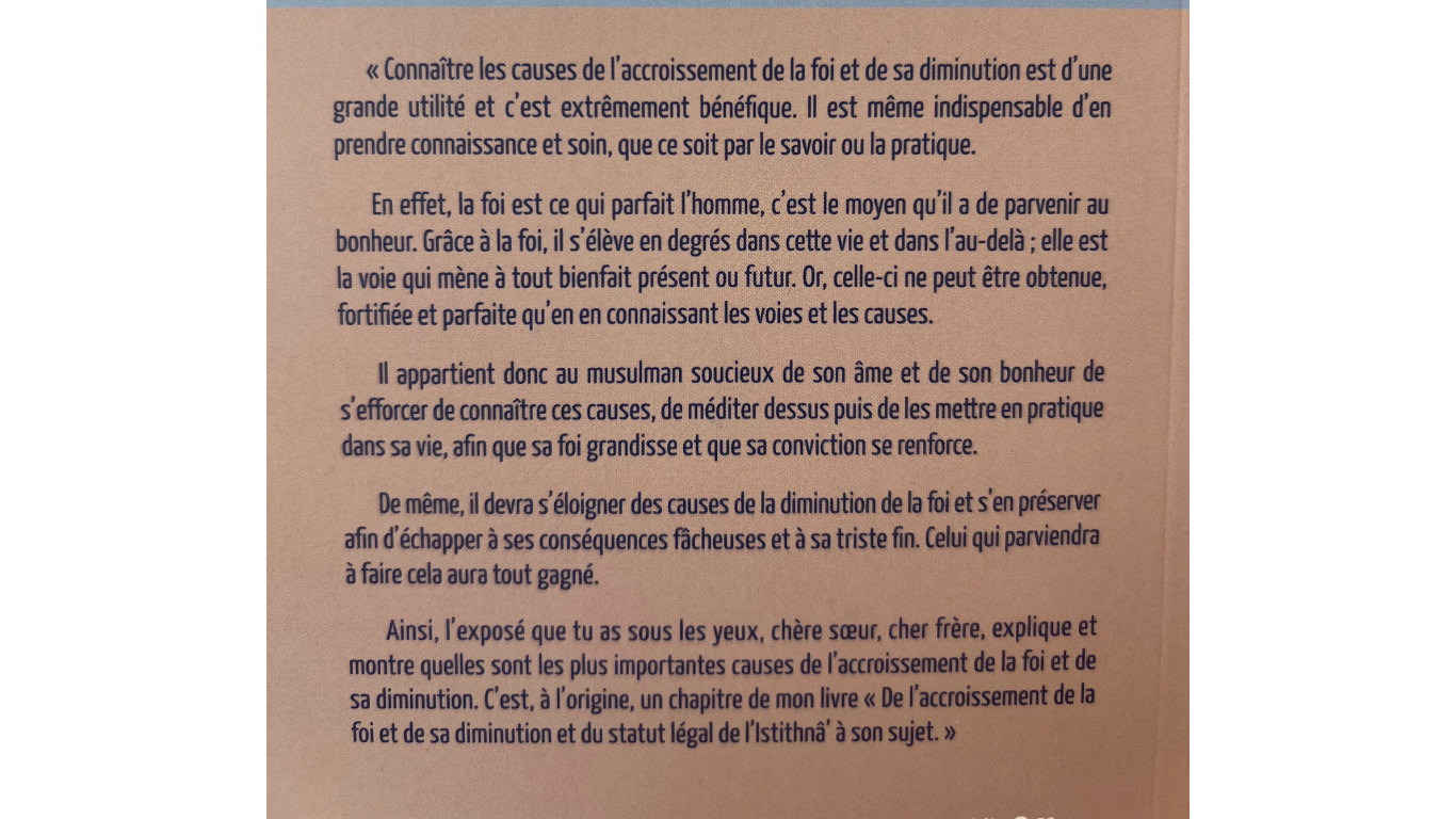 Ce livre vient nous expliquer quelles sont les plus importantes causes de l’accroissement de la foi et sa diminution. Un livre riche en conseils, de quoi entretenir sa foi de la meilleure façons car notre foi est le moyen de parvenir ua bonheur il convient de ne pas la négliger car elle nous élèvera ici-bas et dans l’au delà.