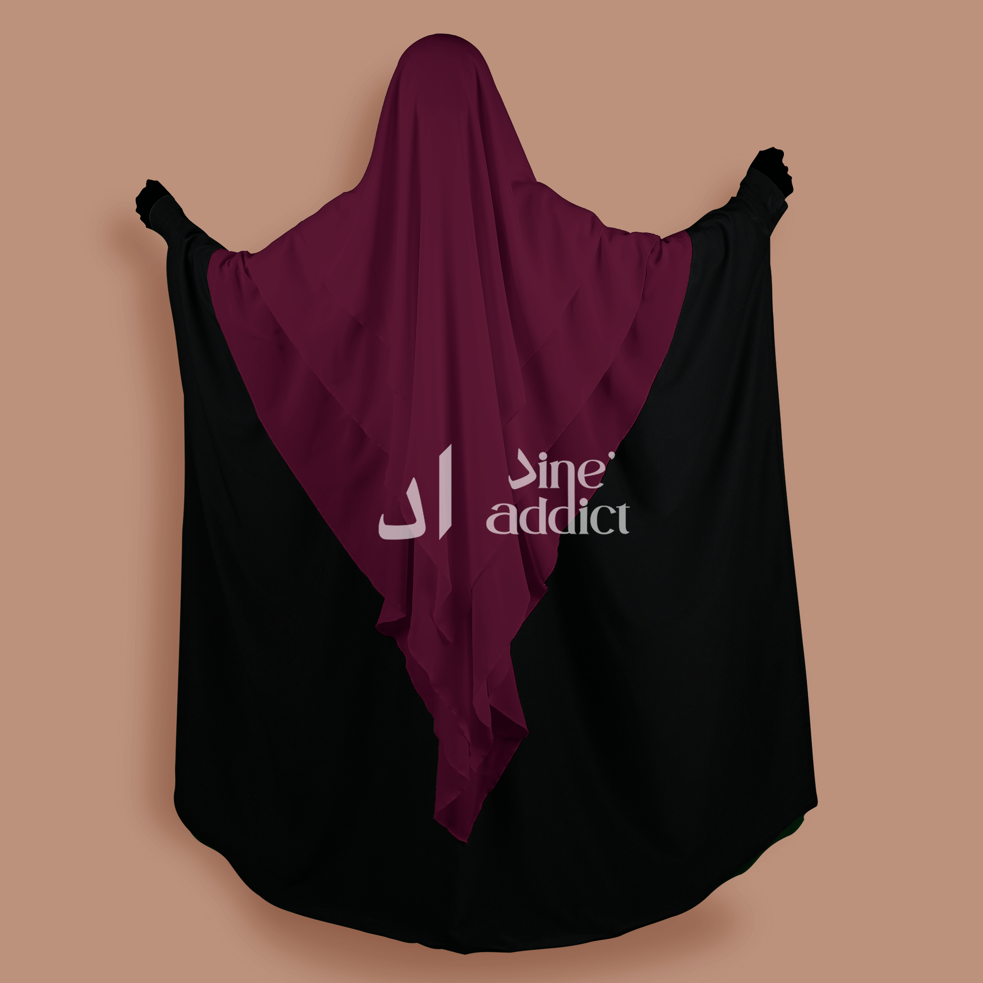 Khimar Mousseline 3 Voiles Bordeaux – Élégance et Confort au Quotidien