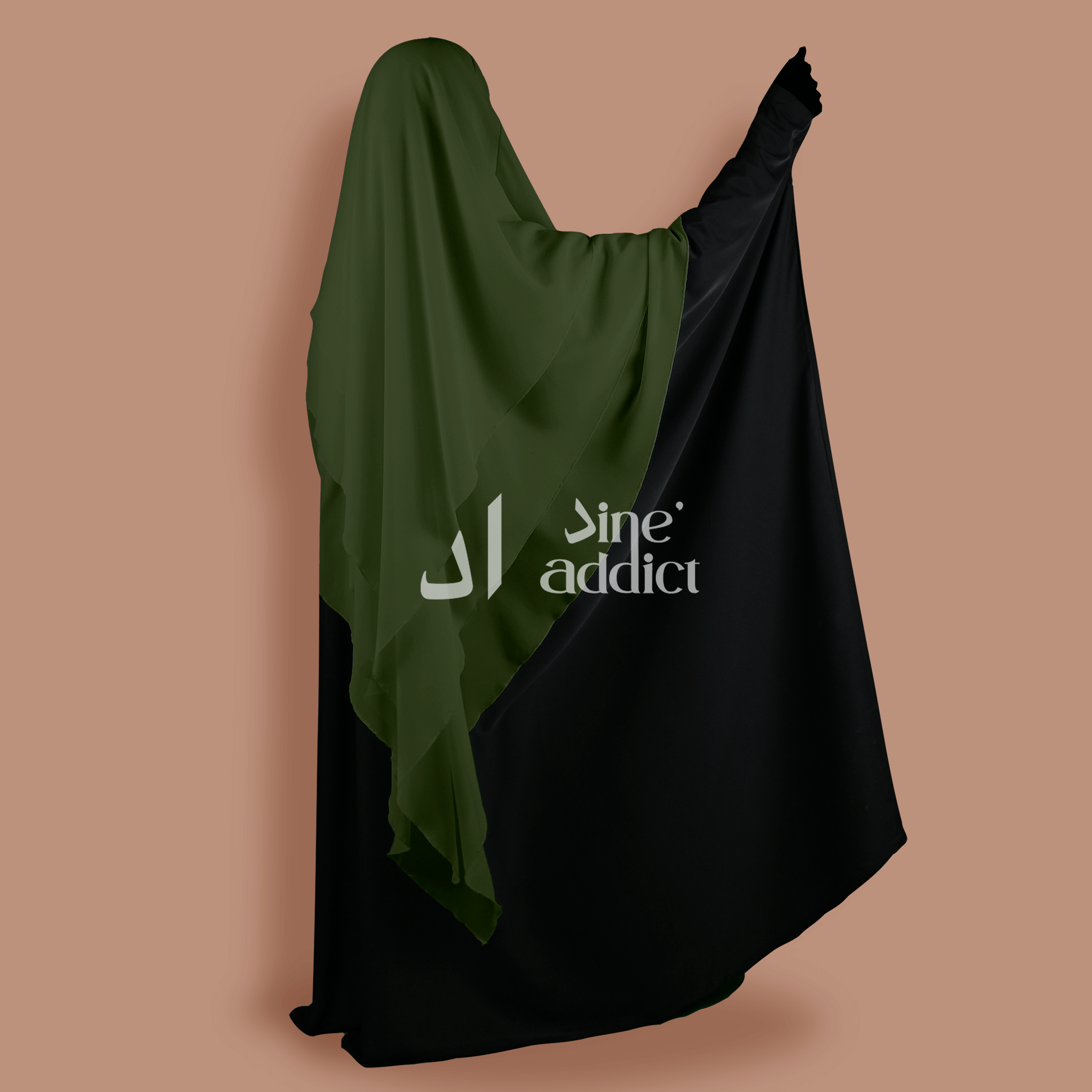 Khimar Mousseline 3 Voiles Kaki – Élégance et Confort au Quotidien