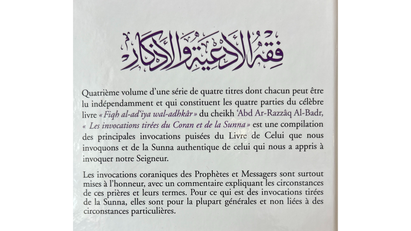 LES INVOCATIONS TIRÉES DU CORAN ET DE LA SUNNA – de Sheikh ’Abdel Razzaq Al Badr – Editions Al Hadith